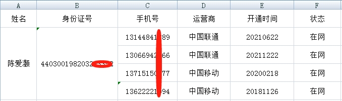查询个人名下手机号码